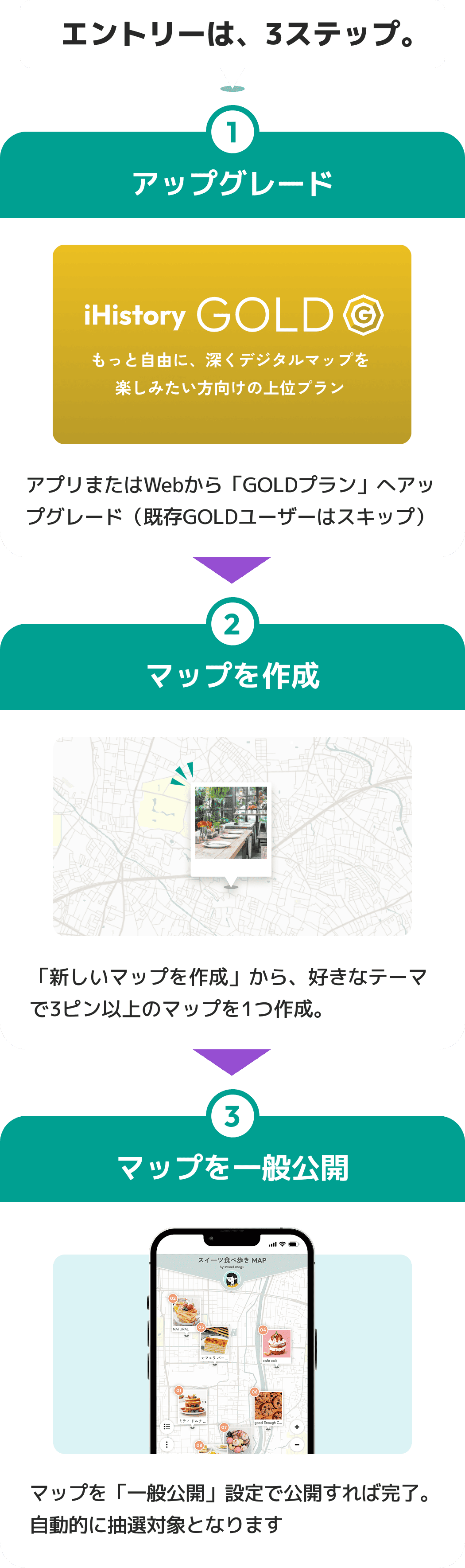 - A はい。期間中に3ピン以上の新規マップを1マップ以上作成し、一般公開いただければ、自動的に抽選の対象となります。